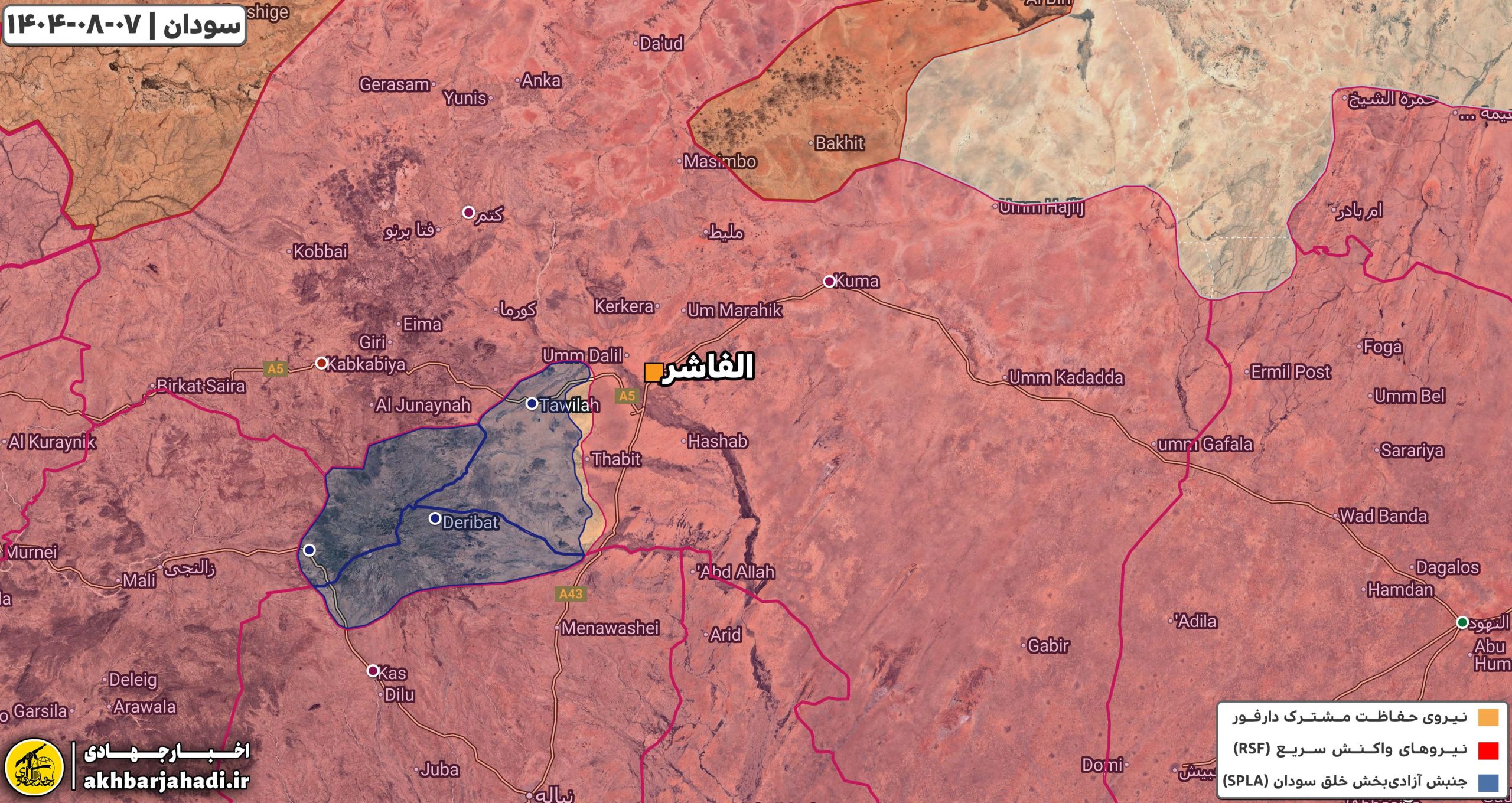 سقوط نظامی: روز یکشنبه، ۲۶ اکتبر، RSF اعلام شد که ستاد ارتش در الفاشر، آخرین دژ نظامی در منطقه دارفور، را پس از بیش از پنج ماه محاصره و درگیریهای شدید، تصرف کرده است. این سقوط عملاً تقسیم جغرافیایی کشور را بین جناحهای مسلح تثبیت میکند: شرق تحت کنترل ارتش و غرب تحت کنترل RSF.