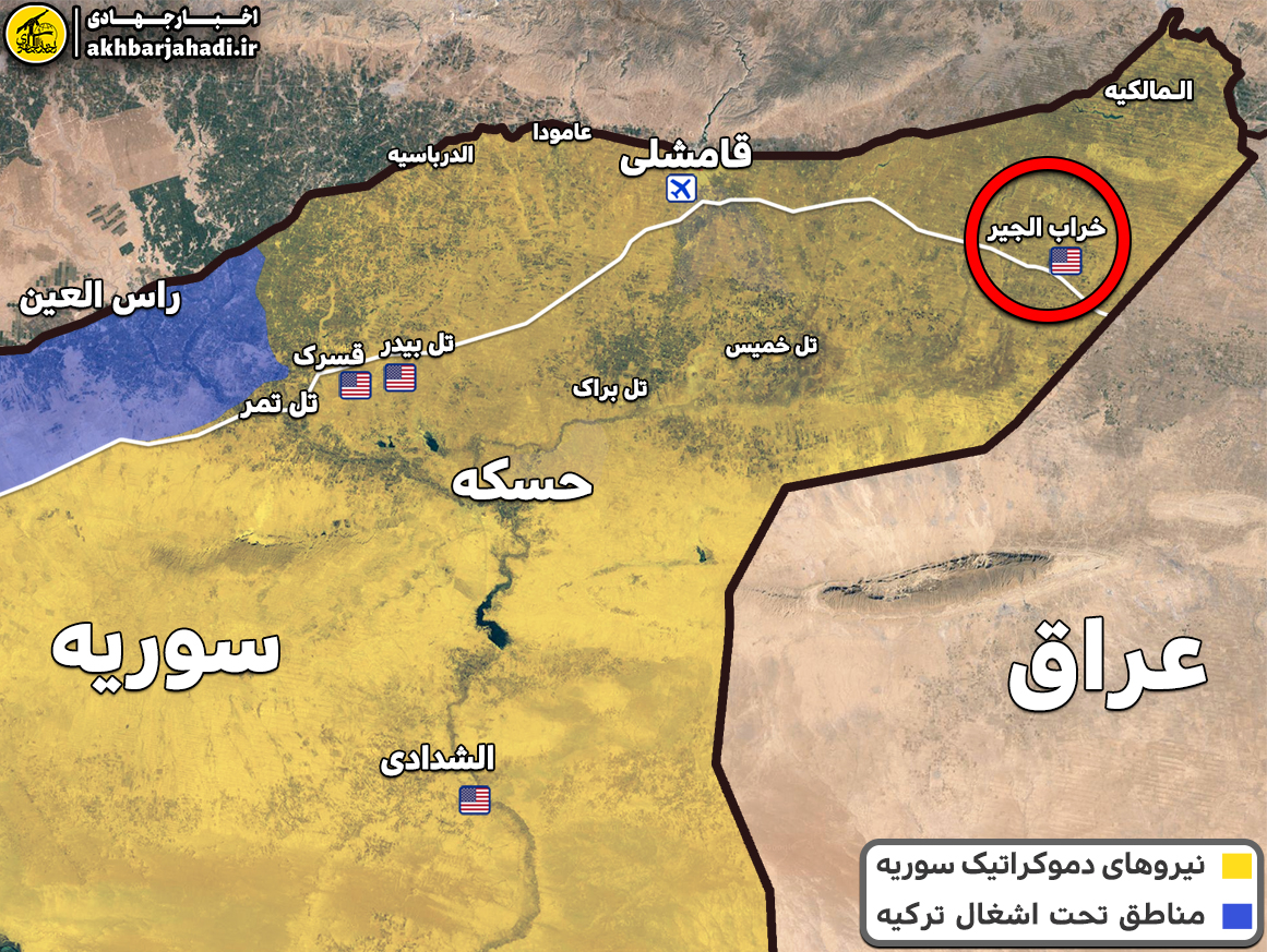 به گزارش اخبار جهادی، پایگاه نظامی «خرابالجیر» (Kharab al-Jir) در استان الحسکه سوریه، تنها یک مقر ساده برای استقرار نیروهای آمریکایی نیست؛ بلکه مرکز اعصاب و فرماندهی سنتکام در مثلث حساس مرزی میان ایران، عراق و ترکیه محسوبمیشود.